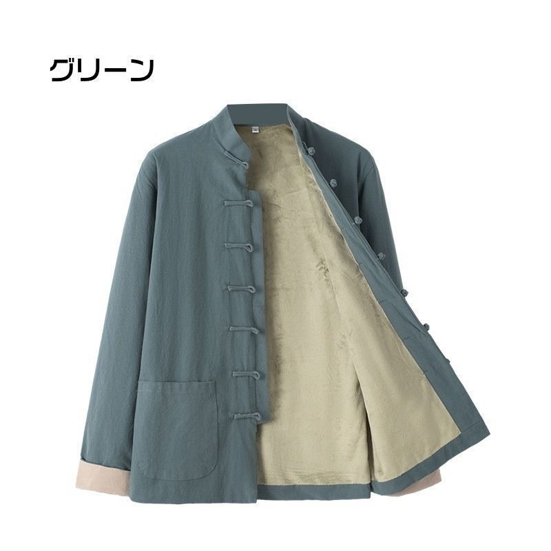 裏起毛 シャツジャケット ♥ ゆったり メンズ 暖かい トップス 冬 防寒 防風 アウター 羽織 カジュアルシャツ 長袖 カンフーシャツ チャイナコラーズ 唐装 漢服 太 拳服 普段着 演出服 舞台着 演奏会 スタンドカラー esyxzd48 MEDICALDB_JP