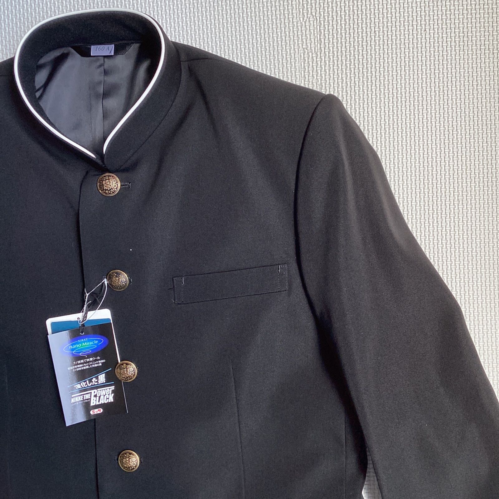 ♥品 混紡 黒サージラウンドカラー 学生服 上着のみ 学ラン 170AB N10090 毛50% ポリエステル50% 中学 高校 詰襟 NIKKE Green Mate ホームウォッシャブル