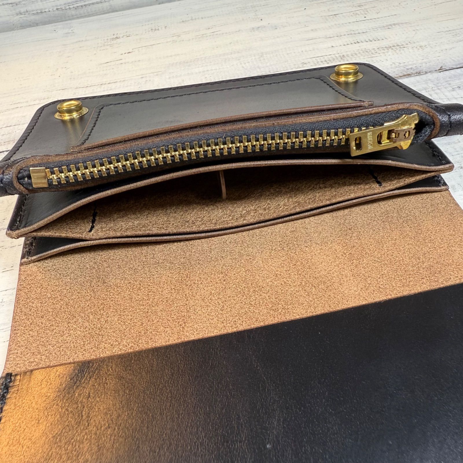 トラッカーウォレットミドル 3層 クロムエクセル ブラック 茶芯 ゴールド universalの検索結果