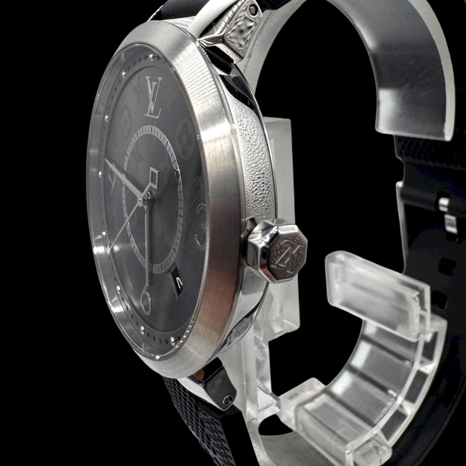 稼働 LOUIS VUITTON ルイヴィトン Q1DM0 タンブール モノグラム スリム エクリプス ダミエ ラバーベルト 3針 デイト シルバー ブラック クォーツ QZ MEDICALDB_JP