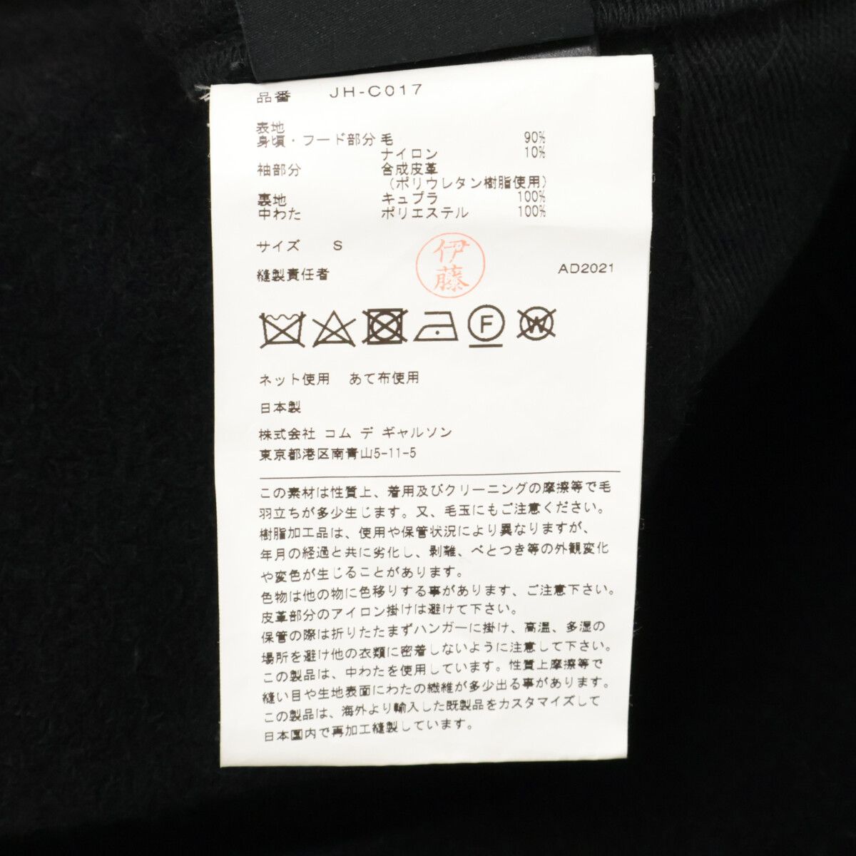 JUNYA WATANABE MAN ジュンヤワタナベマン xグローバーオール JH-C017 袖レザー切替 スタッズ ウール ダッフル Sの検索結果