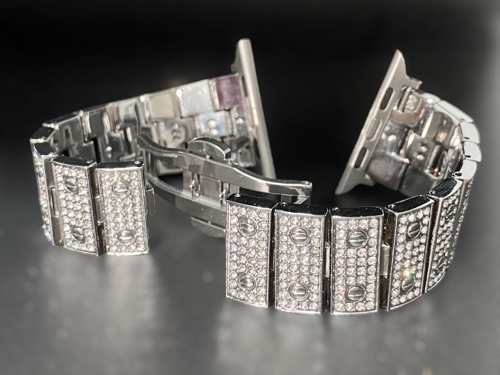 シルバー カバーベルト調整器セットBox付き ステンレスベルト Apple Watch キラキラ アップルウォッチステンレス バンド ケース ultra 49mm MEDICALDB_JP