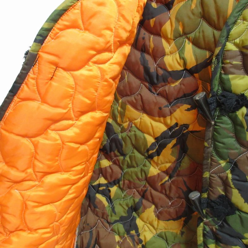 デンハム DENHAM × アトリエリザーブ ATELIER RESERVE 19AW 中綿ベスト キルティング トグル 前開き カラー切替 迷彩柄 カモフラ カーキ×オレンジ Sサイズ 0721 MEDICALDB_JP
