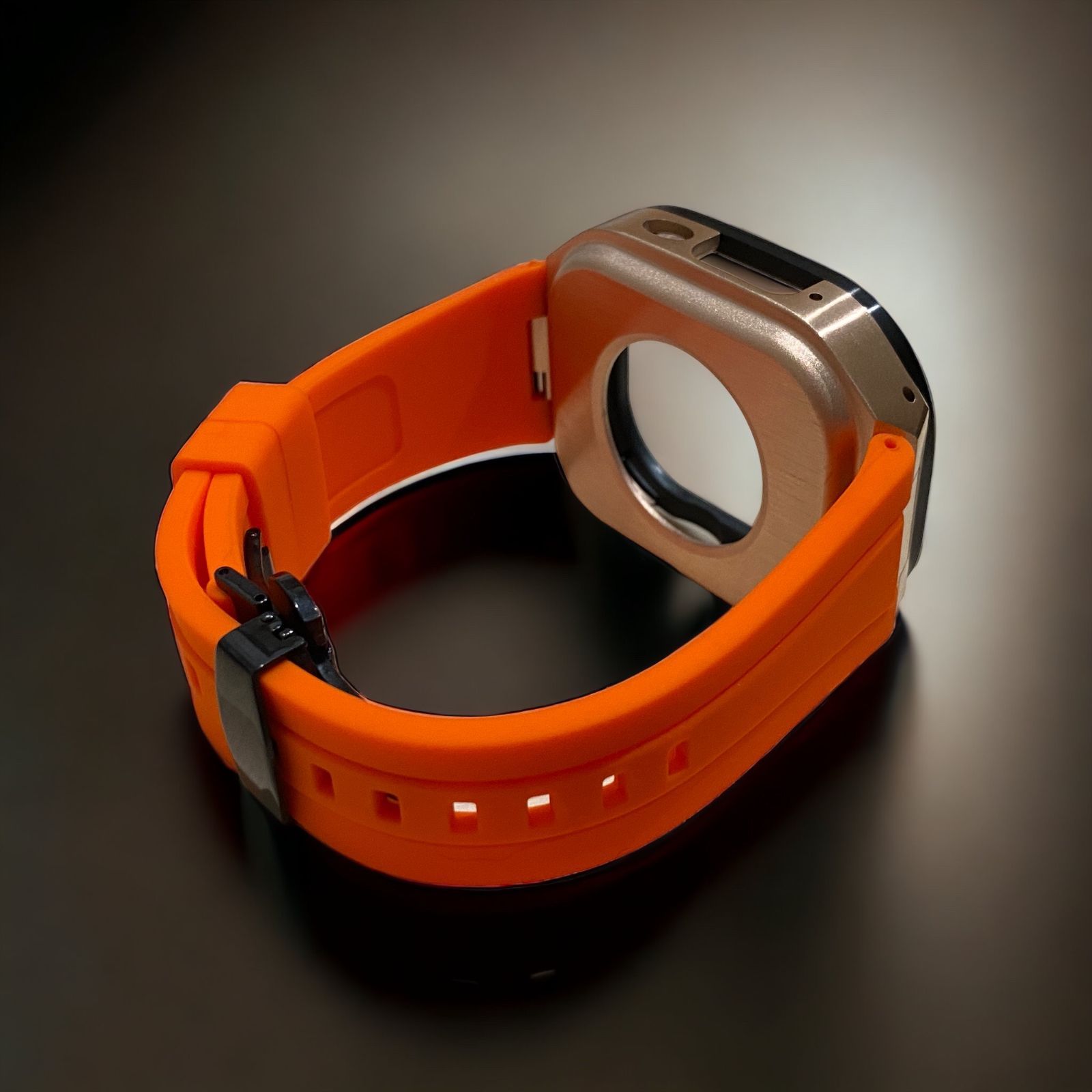 オレンジ×ローズブラック 49mm apple watch ultraアップルウォッチラバーメタルカバーセット ウルトラ 49ミリ用 カスタム ultra1|2|3 MEDICALDB_JP