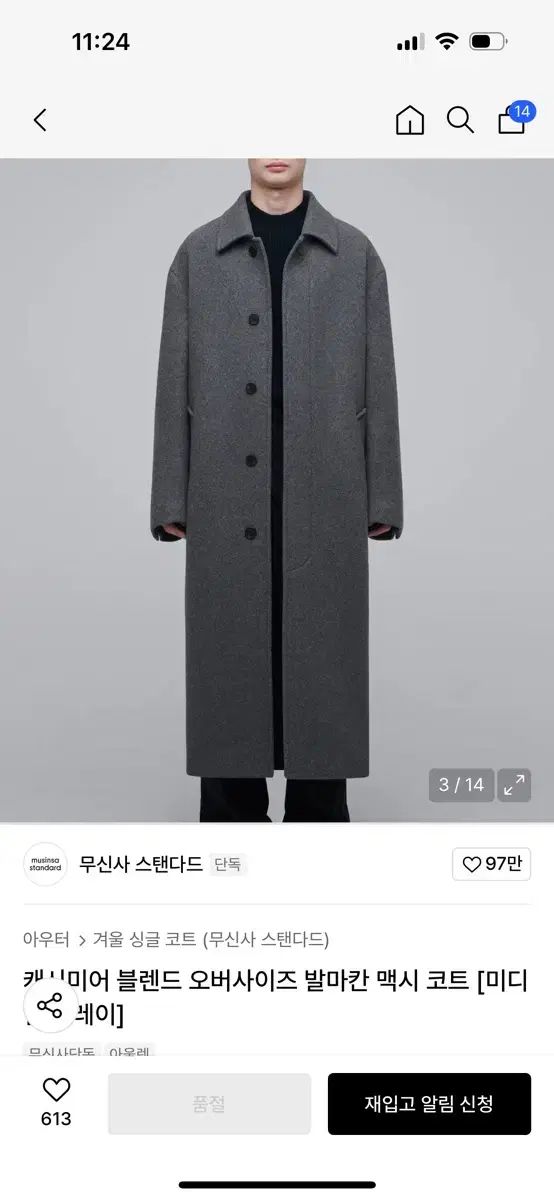 musinsa standard ムシンサスタンダード カシミア ブレンド オーバーサイズ バルマカーン マキシコート ミディアム グレーの検索結果