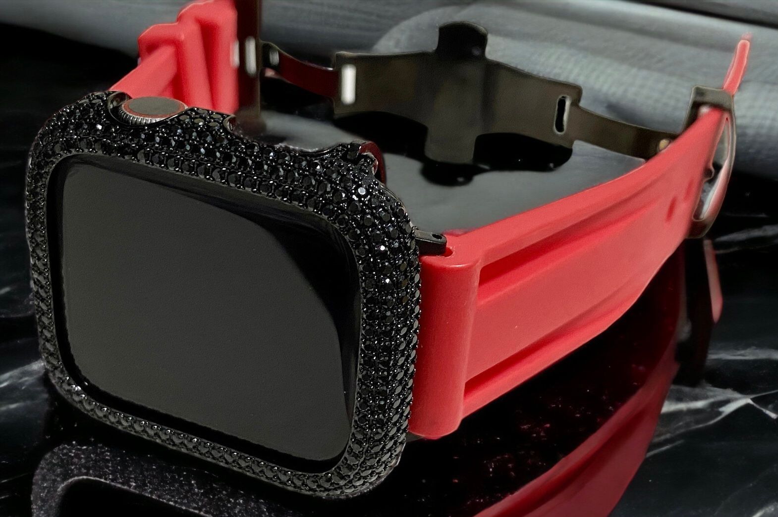 ブラック×レッド 超 パブェ Apple Watch キラキラ カバー ケース ラバー バンド ベルトの検索結果