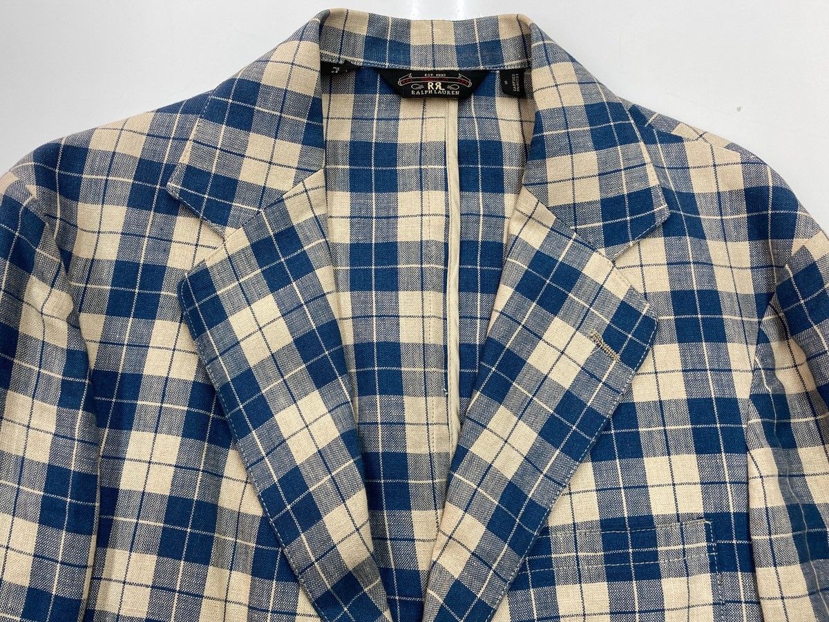 ダブルアールエル RRL 90s 90年代 三ツ星タグ 三角タグ リネン テーラードジャケット 生成り 青 ジャケット チェック ブルー Sサイズ 104MT-2020 MEDICALDB_JP
