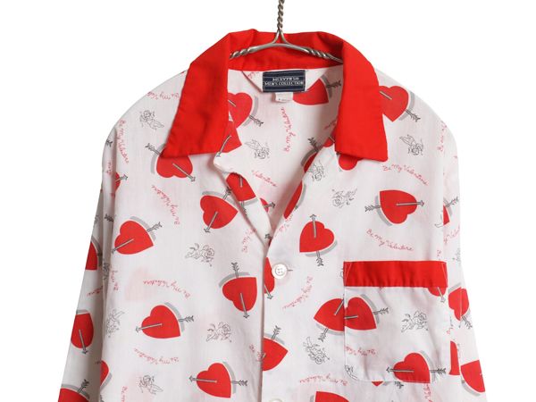 なクーポン配布中! 80s ハート x エンジェル 総柄 パジャマ セットアップ メンズ M | ヴィンテージ オープンカラー シャツ イージー パンツ グランジ MEDICALDB_JP