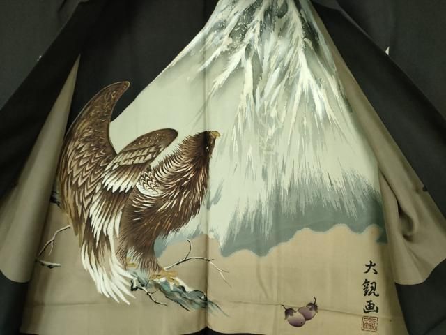 平和屋着物●男性 黒紋付 羽織セット 羽裏 一富士二鷹三茄子 正絹 DAAX1386opの検索結果