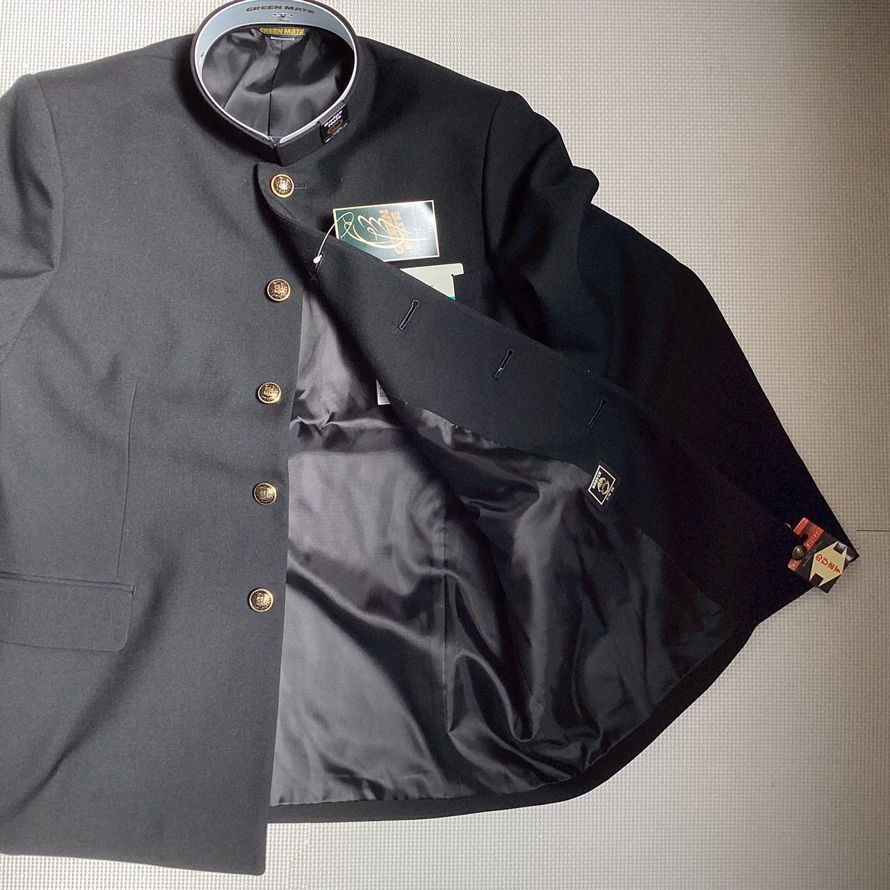 ♥品 混紡 黒サージラウンドカラー 学生服 上着のみ 学ラン 170AB N10090 毛50% ポリエステル50% 中学 高校 詰襟 NIKKE Green Mate ホームウォッシャブル