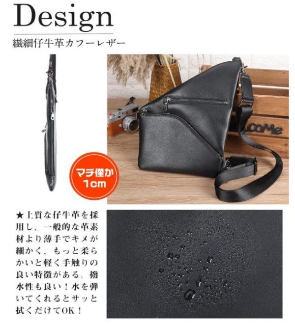 本革 服の下に着れる 薄マチ ボディバッグ 仔牛革 メンズ ワンショルダーバッグ 2WAY YKK iPadmini 斜め掛け 自転車dph0217 MEDICALDB_JP