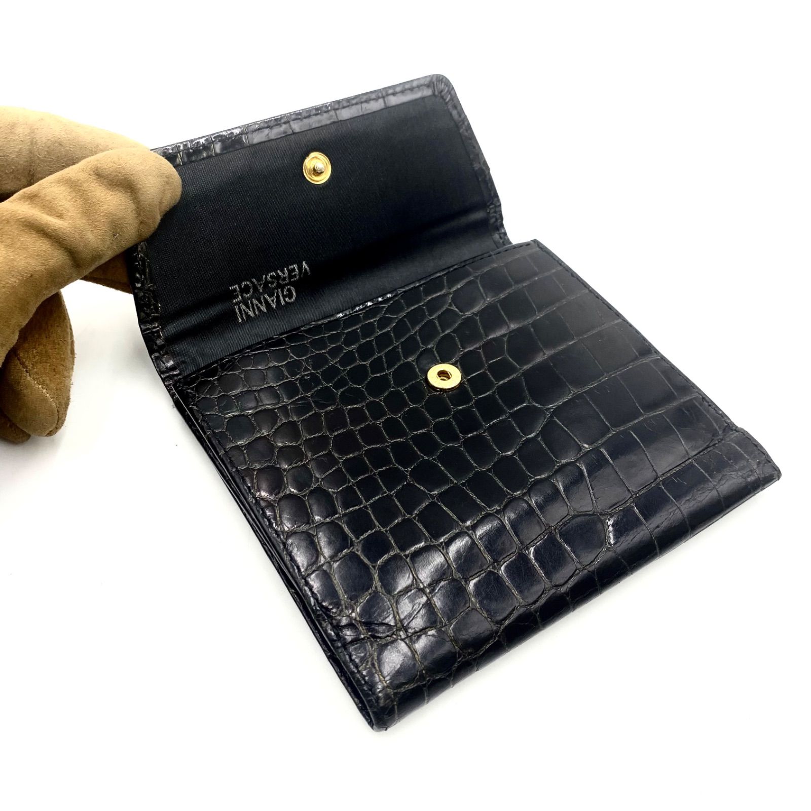 GIANNI VERSACE ジャンニヴェルサーチェ ヴェルサーチ 財布 ウォレット 二つ折り 三つ折り クロコ 型押し ブラック ゴールド MEDICALDB_JP