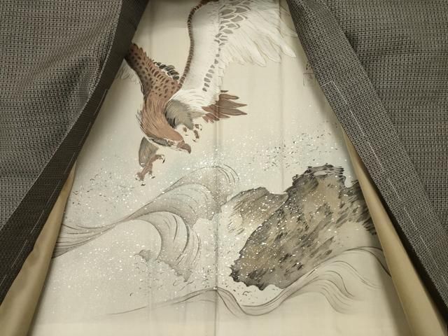 平和屋着物 上 男性 紬 アンサンブル 色無地 藍墨茶色 羽裏 鳥 DZAA8533kh5