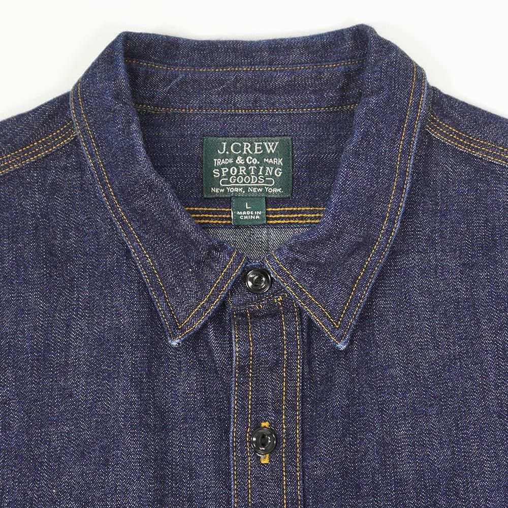 ジェイクルー J.CREW 00s 2000年代 Y2K デニムワークシャツ マチ付き トリプルステッチ ダンガリーシャツ 隠しボタンダウン 猫目ボタン USA ヴィンテージ アメリカ 古着 メンズ シャツ 真紺 L MEDICALDB_JP