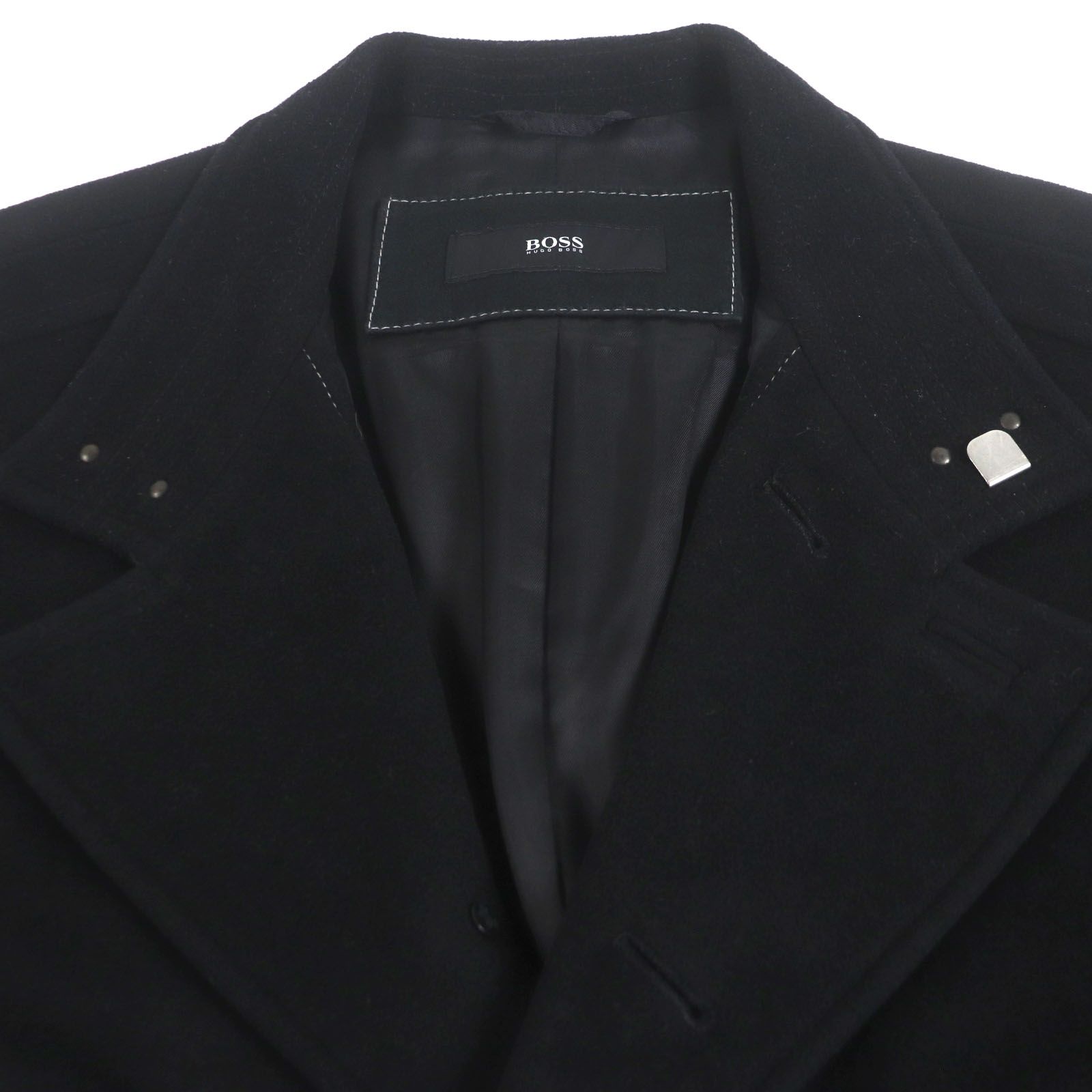 HUGO BOSS ヒューゴボス ウール70% カシミヤ混 ロゴ入りボタン シングル チェスターコート ブラック 48 ポーランド製 正規品 メンズ MEDICALDB_JP