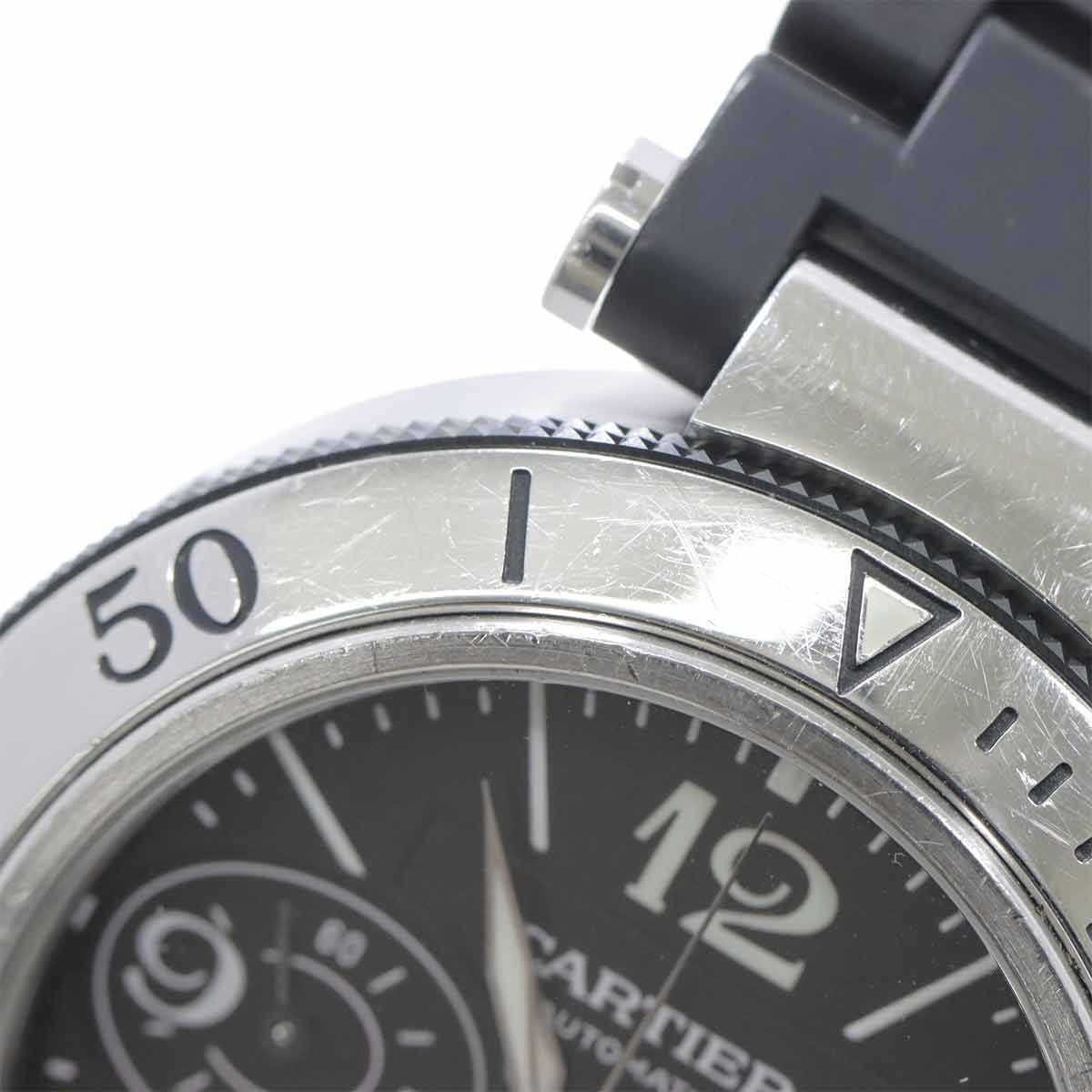 カルティエ Cartier パシャ シータイマー クロノグラフ W31088U2 メンズ 腕時計 デイト ラバー 自動巻き Pasha Seatimer 90293822 MEDICALDB_JP