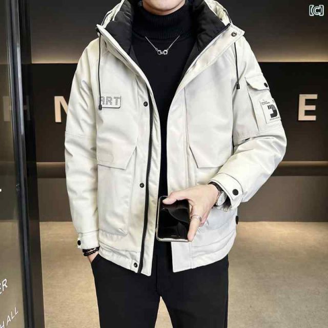 M 秋冬 コーデ メンズ 服 シンプル ファッション オシャレ 大人 かっこいい 大きいサイズ ストリート 紳士服 ダウン ジャケット フード付き 冬 厚手 暖かい トップス 服 カジュアル ホワイトダックダウン