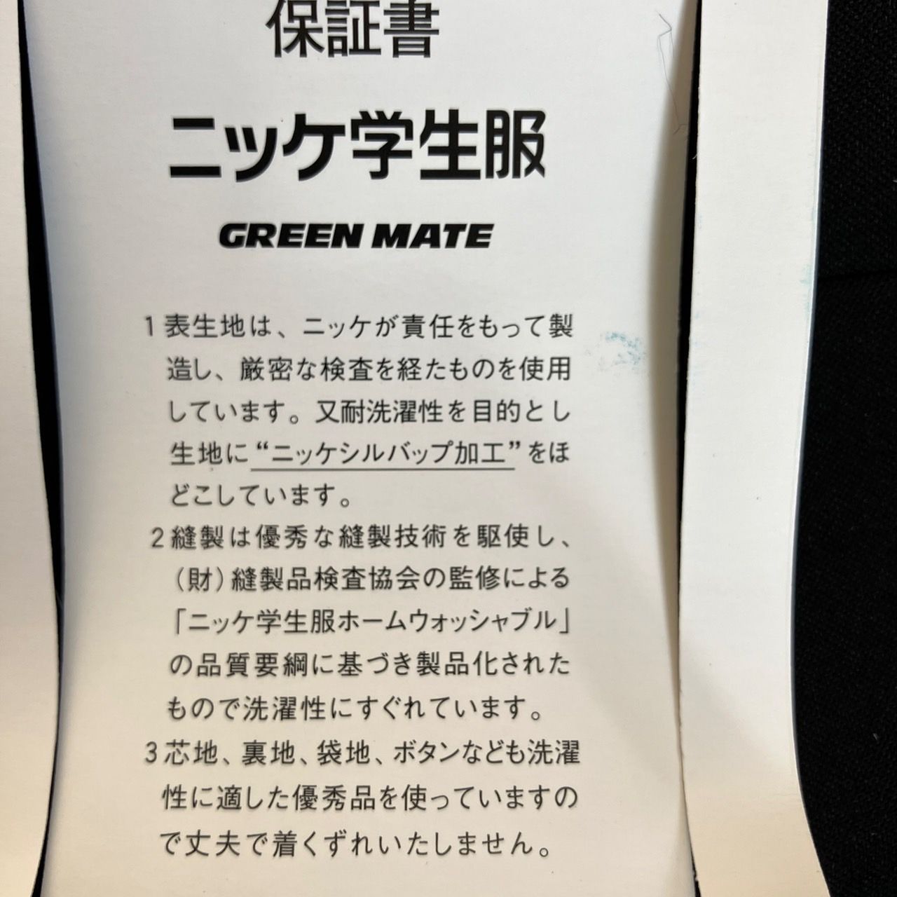 ♥品 詰襟 標準型学生服 混紡 黒サージ織り 襟カラー 上着のみ 学ラン 165A N10051 NIKKE 毛50% ポリエステル50% ホームウォッシャブル 中学 高校 GREEN MATE