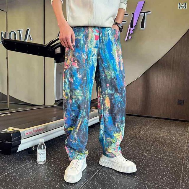 メンズ ファッション 服 男性用 オシャレ シンプル 大人 かっこいい ストリート ウォッシュ加工 ポケット装飾 カジュアル パンツ 春 プリント 水墨画風 ストレート ジーンズ パンツの検索結果