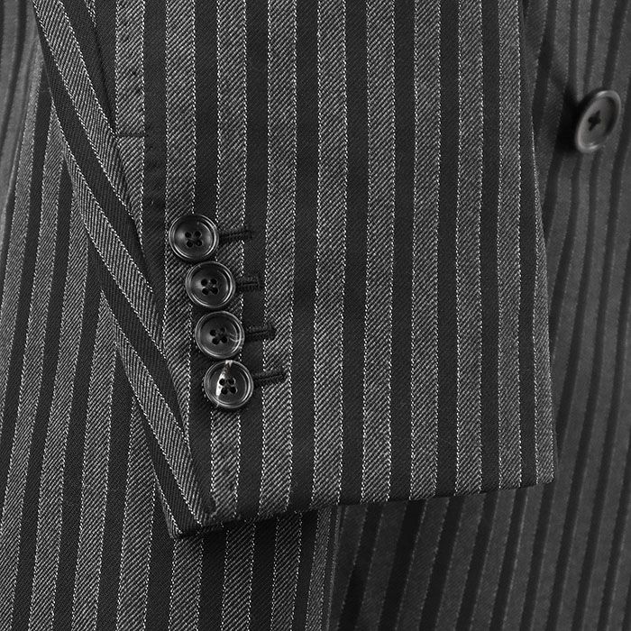 GUCCI グッチ コート ダブルブレスト ロゴ ボタン チョークストライプ ベロアカラー フルライニング ウール アウター メンズ サイズ 46 チャコール ブラック ダークパープル 灰色 黒 濃紫 イタリア製 MEDICALDB_JP