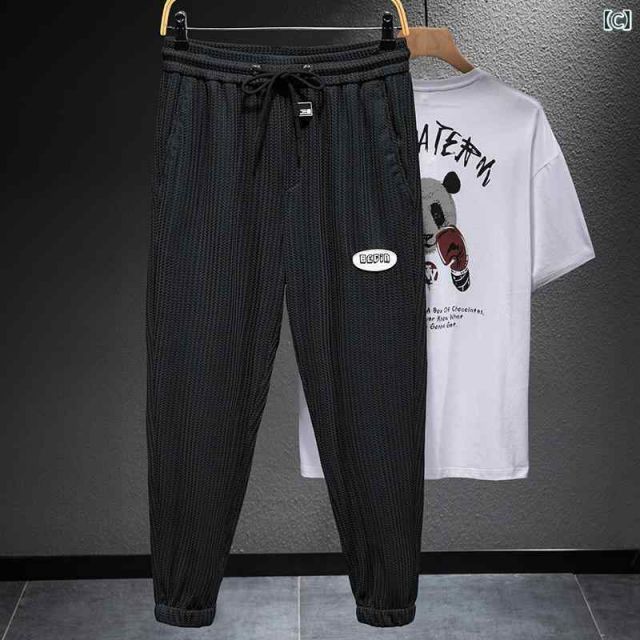 2XL メンズ 男性用 ファッション オシャレ シンプル 大人 かっこいい ストリート ヒップホップ HipHop 夏 白 アイスシルクニット パンツ 薄手 通気性 カジュアル スポーツ スウェット パンツ MEDICALDB_JP