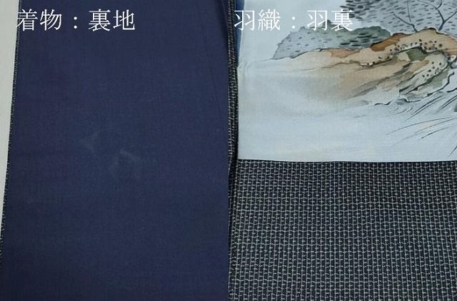 平和屋着物●男性 色紋付 羽織セット キングサイズ 長羽織 着物 御召御納戸色 羽織 百入茶色 正絹 DAAV6859ps