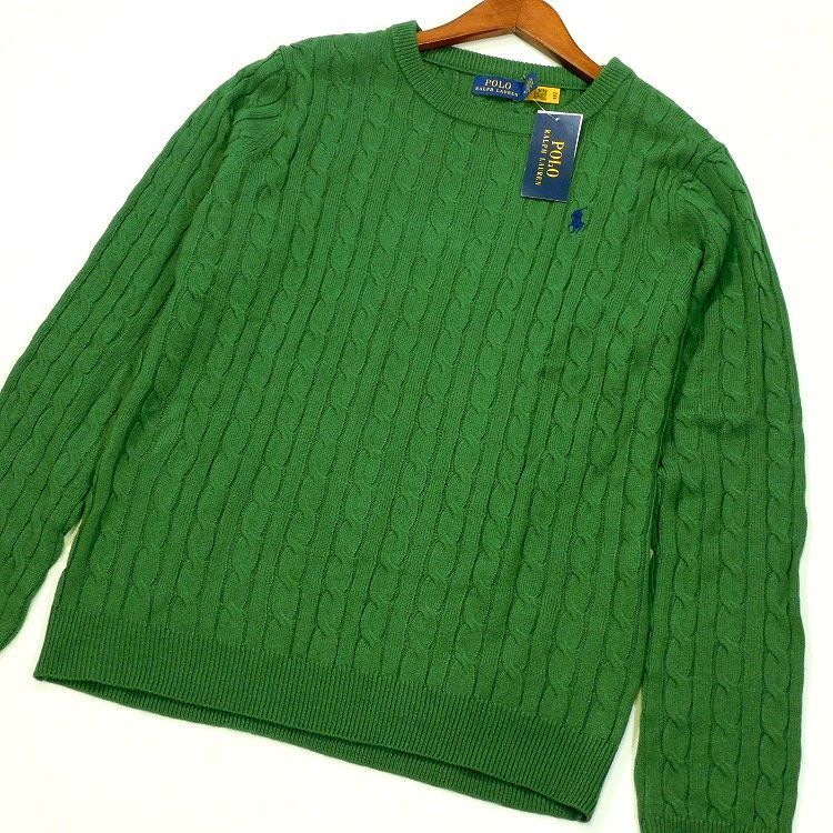 定価27 500円 ポロ ラルフローレン コットンセーター ケーブルニット XL グリーン クルーネック POLO RALPH LAUREN メンズ MEDICALDB_JP