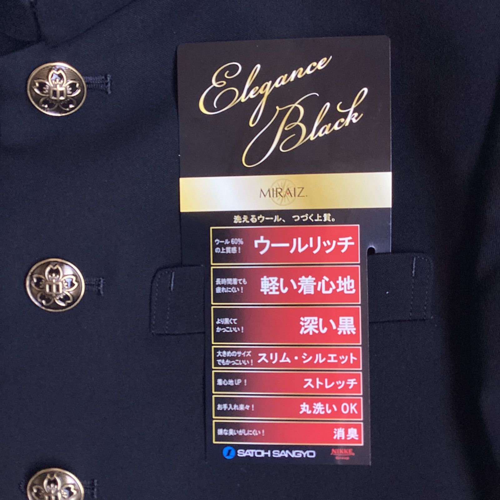 ♥品 詰襟 標準型学生服 混紡 黒サージ織り 襟カラー 上着のみ 学ラン 170A N10051 NIKKE 毛50% ポリエステル50% ホームウォッシャブル 中学 高校 GREEN MATE