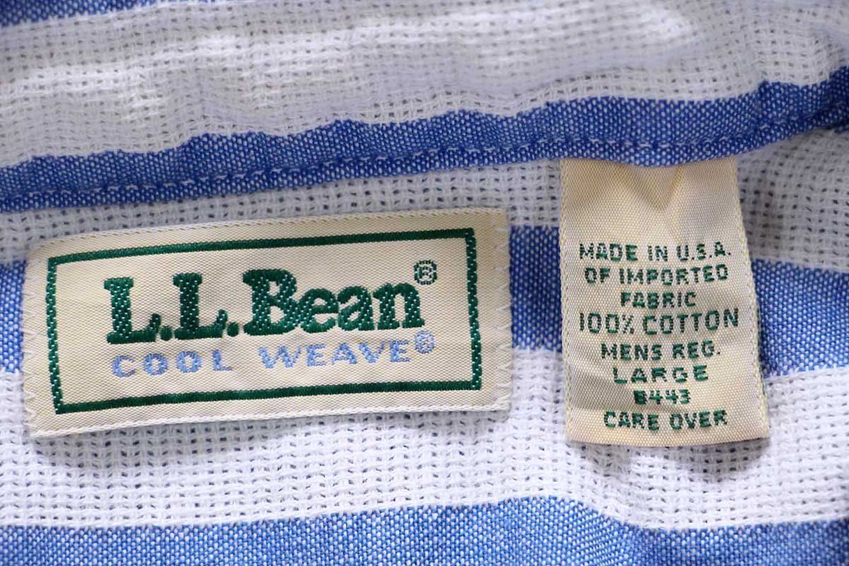 90s L.L.Bean COOL WEAVE ストライプ 半袖 コットンシャツ 青×白 L-R オールド ビンテージ アウトドア 織り柄 オーバーサイズ MEDICALDB_JP