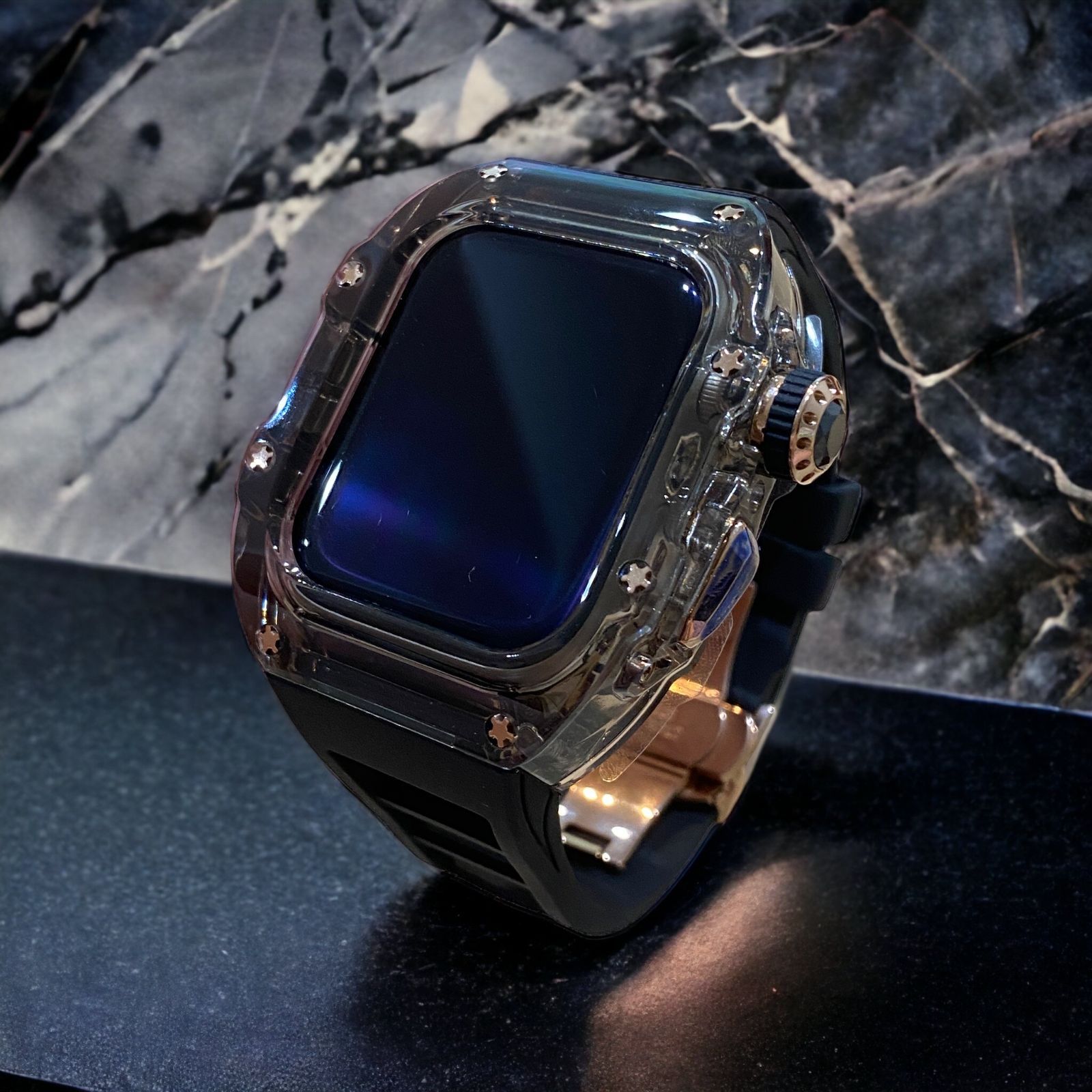 スモークブルー×ローズブラック 49mm apple watch ultraアップルウォッチラバーメタルカバーセット ウルトラ 49ミリ用 カスタム ultra1|2|3