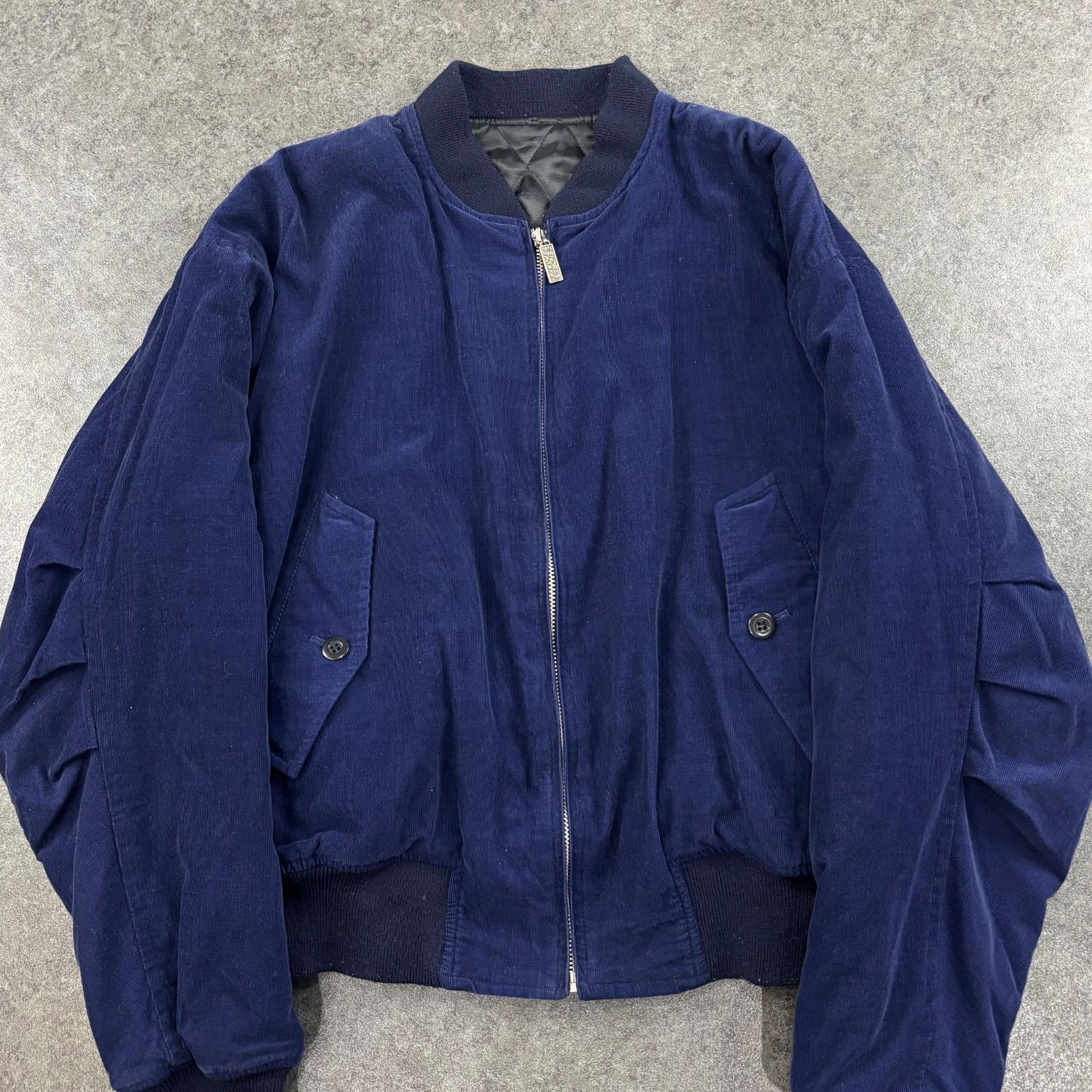 90s TENORAS SPORTS MA-1 Flight Bomber Corduroy Jacket Blouson Navy y2k ティノラス コーデュロイ ボンバージャケット ブルゾン ワッペン 刺繍 ネイビー 紺 ヴィンテージ ビンテージ F MEDICALDB_JP