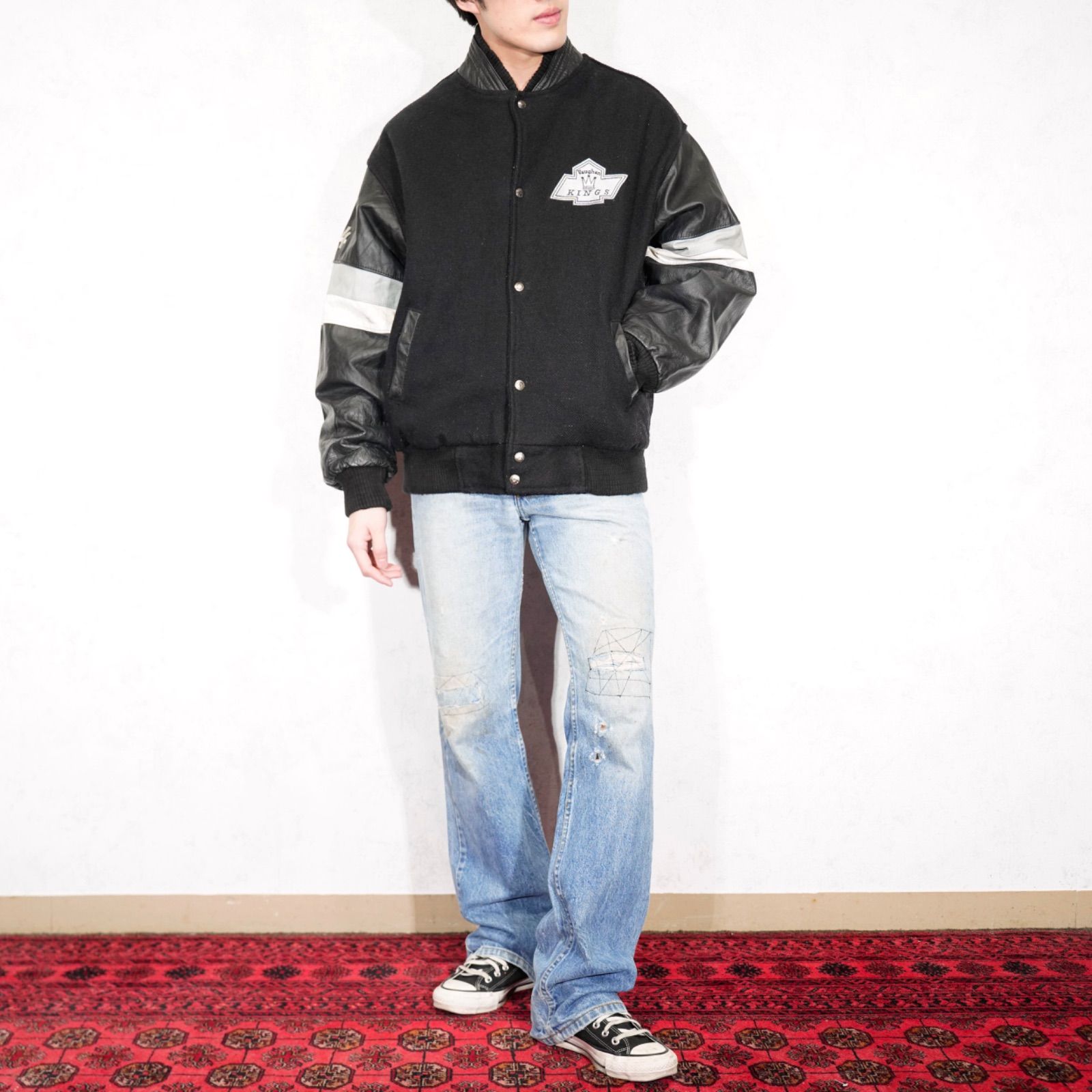 USA VINTAGE LEATHER SPORT VAUGHAN KINGS LOGO EMBROIDERY DESIGN LEATHER WOOL STADIUM JUMPER|アメリカ古着スポーツチームロゴ刺繍デザインレザーウールスタジャンの検索結果