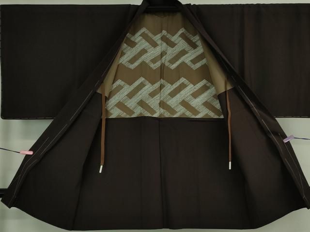 平和屋着物●男性 紬 アンサンブル 色無地 媚茶色 正絹 AABB0435ph