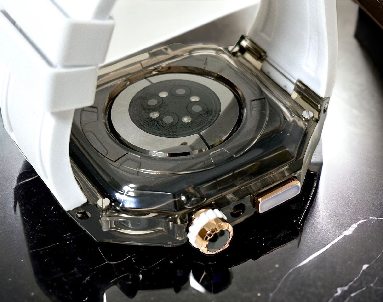 クリアブラック ホワイト ローズゴールド◆アップルウォッチ ラバーベルト カバー クリア ケース 40mm 41mm 44mm 45mm 4 5 6 7 8 9 se スポーツ メンズ レディース 4ネジ Apple Watch バンド オリジナルバックル付き MEDICALDB_JP