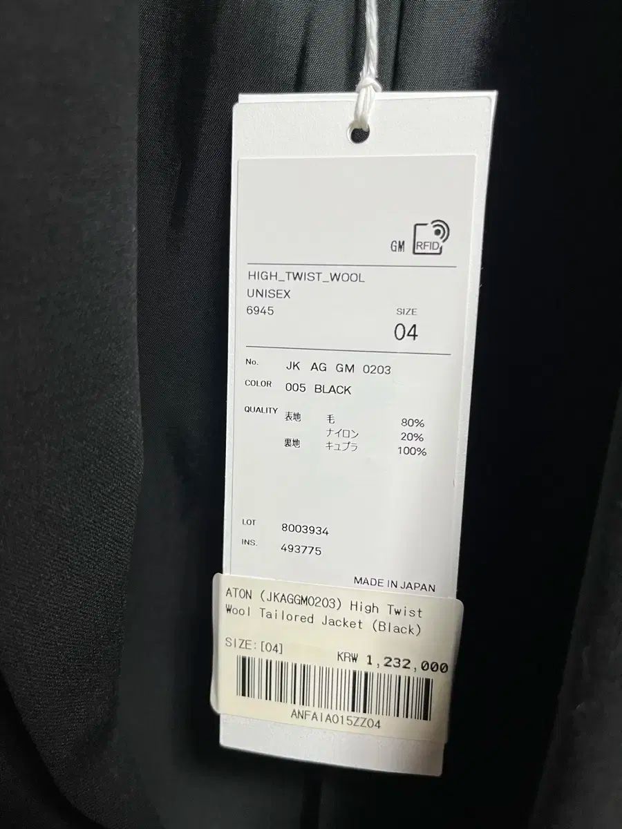 Aton High Twist Wool セットアップ 4 サイズ 黒の検索結果
