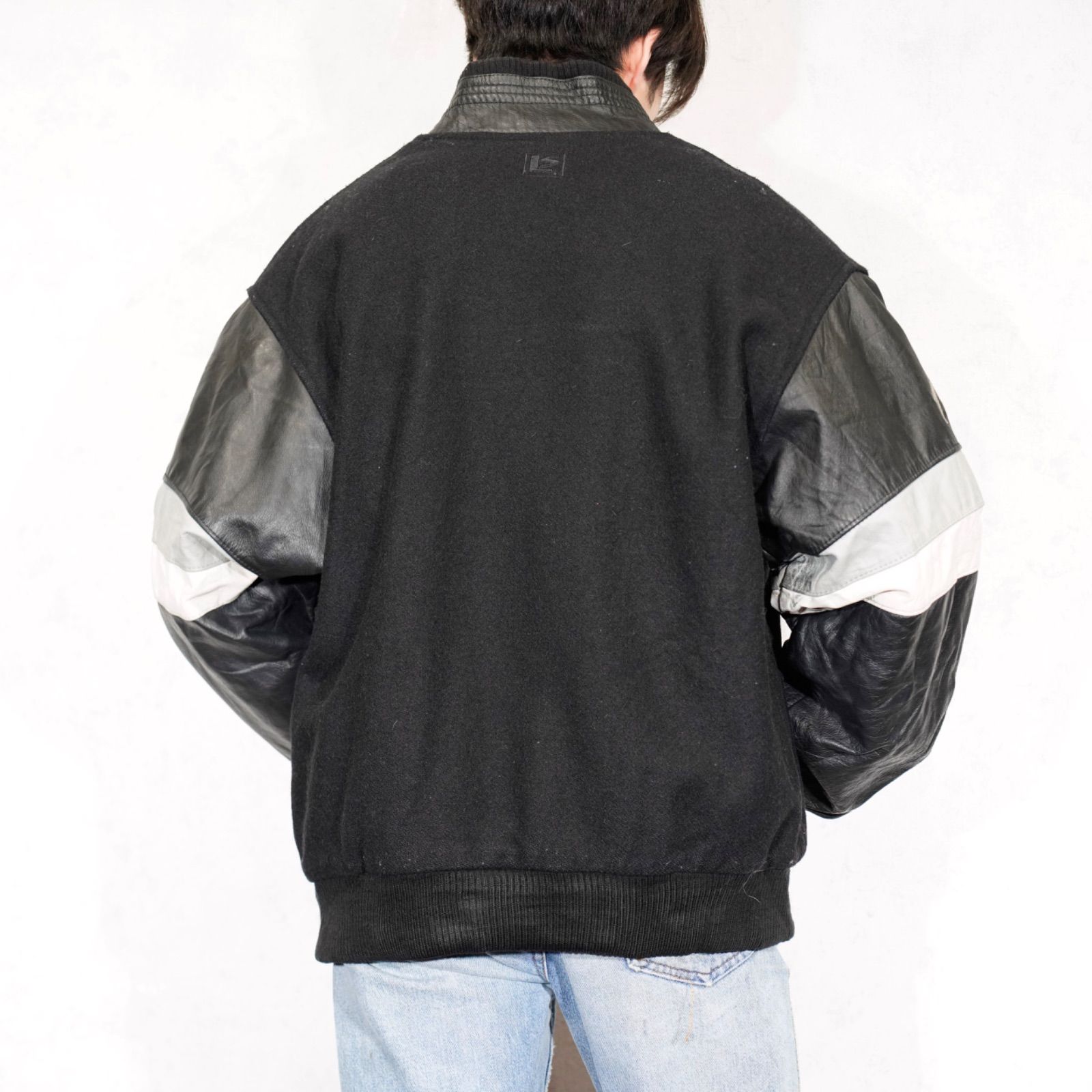 USA VINTAGE LEATHER SPORT VAUGHAN KINGS LOGO EMBROIDERY DESIGN LEATHER WOOL STADIUM JUMPER|アメリカ古着スポーツチームロゴ刺繍デザインレザーウールスタジャン MEDICALDB_JP