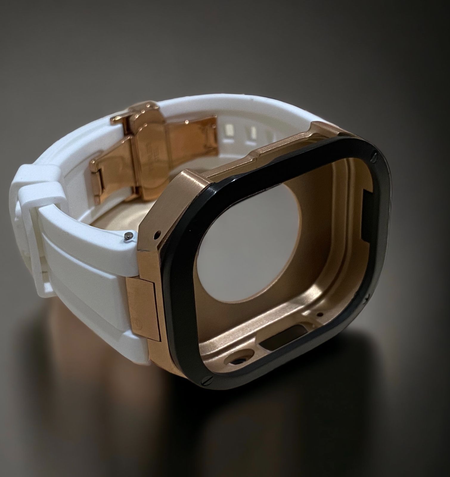 ホワイト×ローズブラック 49mm apple watch ultraアップルウォッチラバーメタルカバーセット ウルトラ 49ミリ用 カスタム ultra2 MEDICALDB_JP
