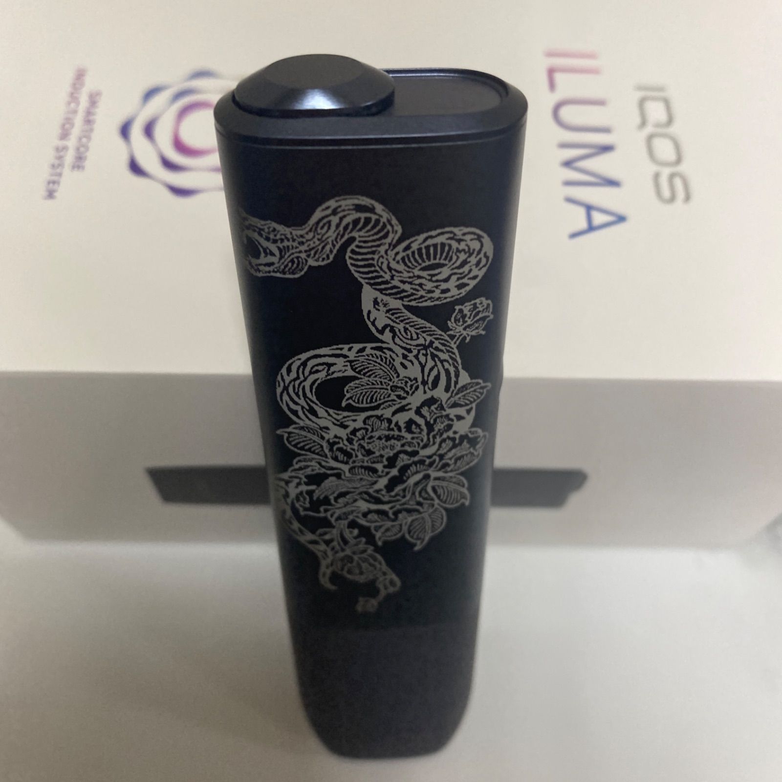 iQOS ILUMA ONE アイコス イルマ ワン レーザー加工 両面加工 蛇 牡丹 和柄 和彫り スネーク ペブルグレー 黒 ♥ 送料無料 カスタム オリジナル オシャレ かっこいい 男女兼用デザイン スネーク 花 華 菊 ボタン 刺青 入れ墨 MEDICALDB_JP