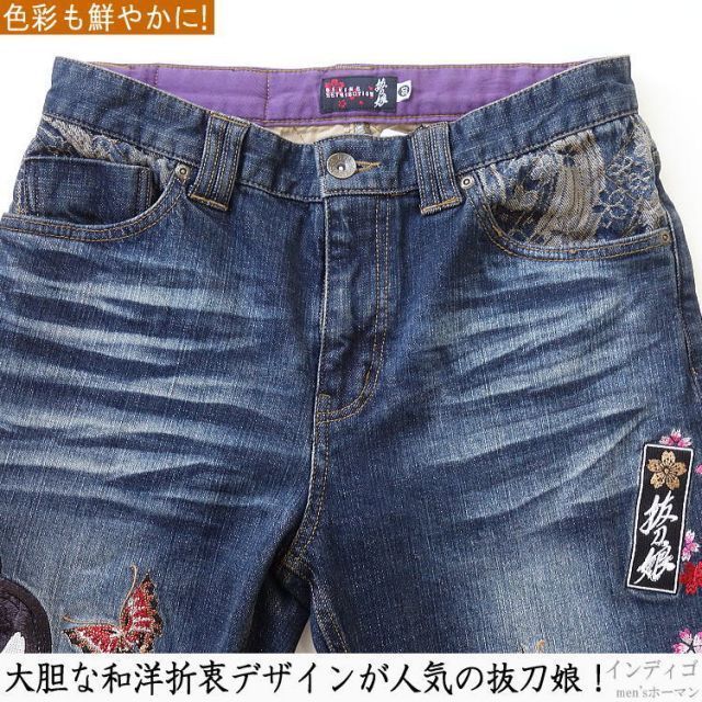 セール 25%OFF 抜刀娘|バットウムスメ 送料無料 ばっとうむちゅめ ほのかちゃん りんちゃん刺繍 ムスメちゃん 総刺繍 デニムパンツ 和柄アメカジ ジーンズ インディゴ 38 smtb-k ky 父の日 YDKG-k メンズ ky ギフト MEDICALDB_JP