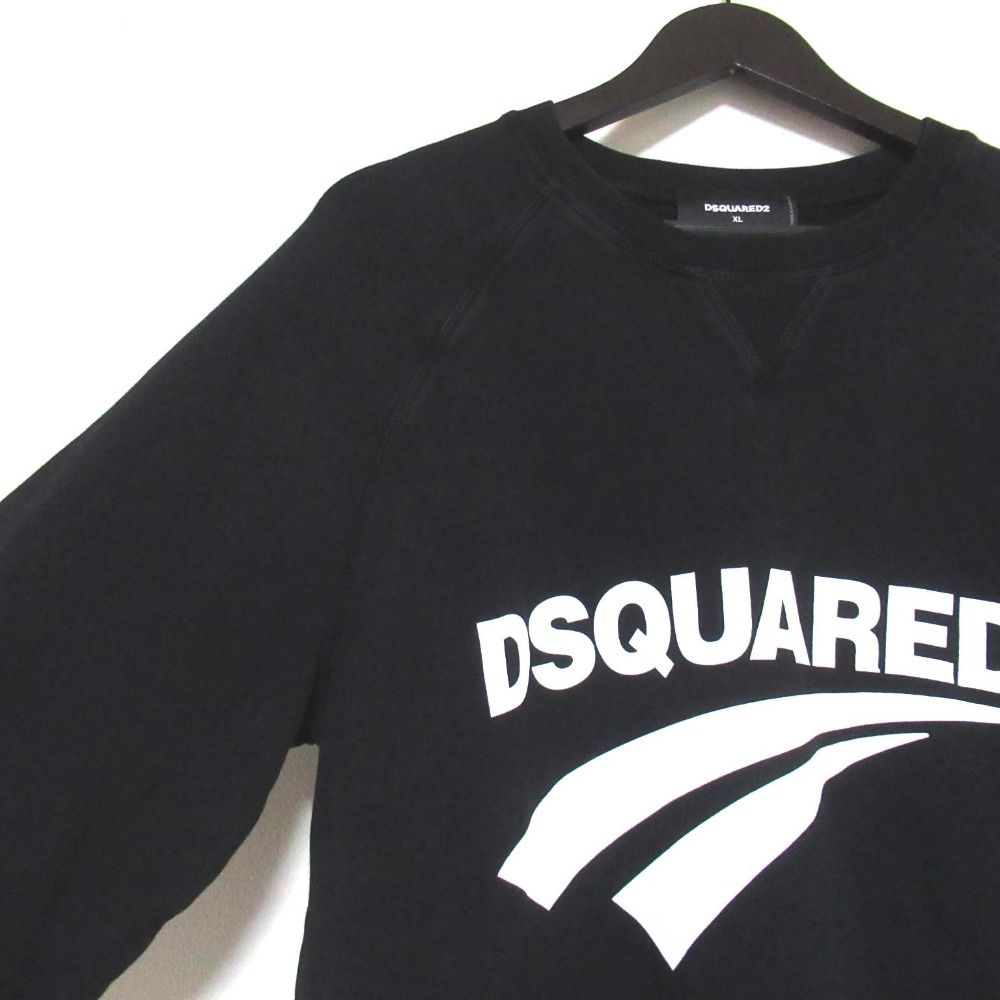 DSQUARED2 ディースクエアード Classic Raglan Fit 裏起毛 長袖 プリント スウェットシャツ トレーナー XLサイズ ブラック メンズ 古着 MEDICALDB_JP