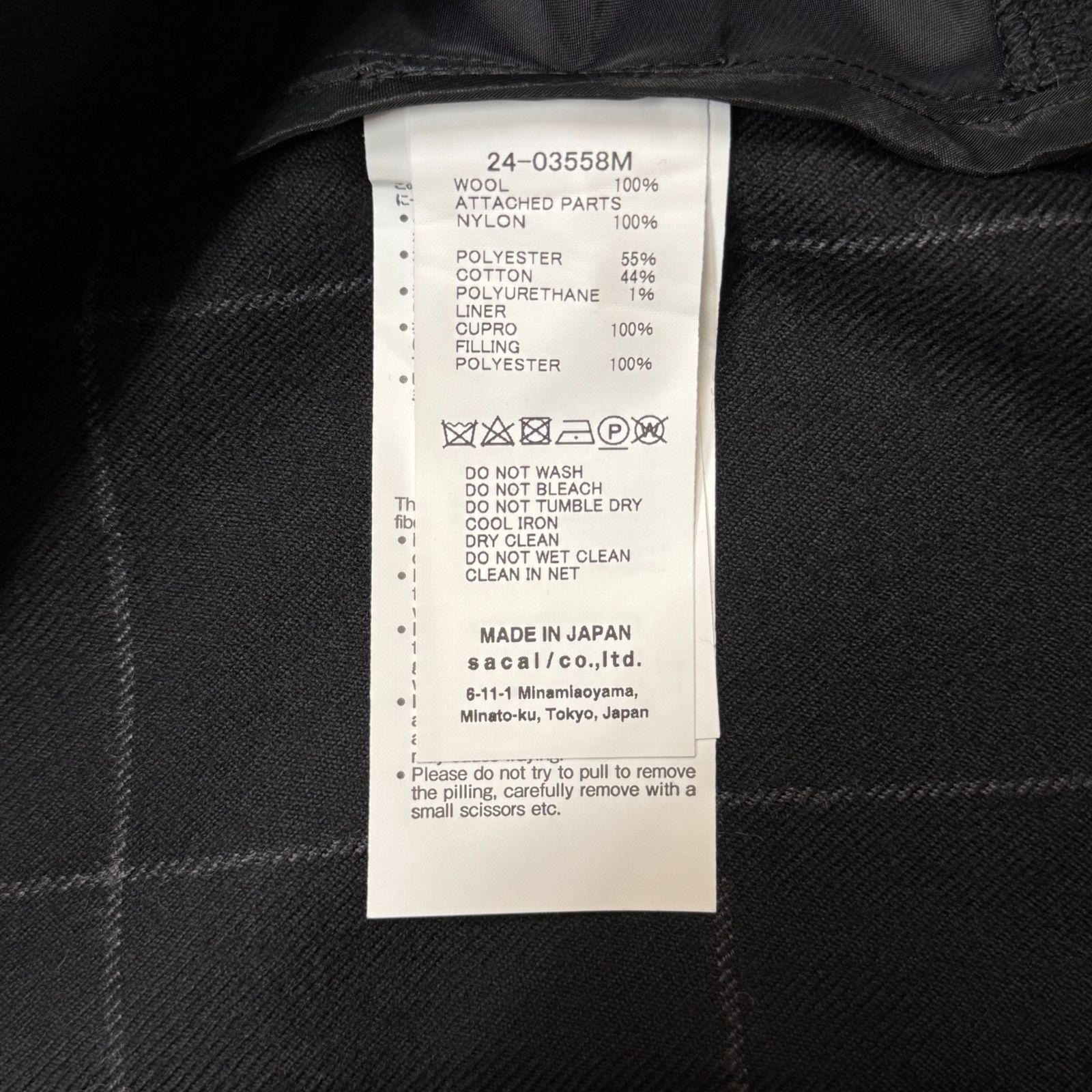参考上代85800円 sacai 24AW Windowpane Shirt ウィンドウペーンシャツ ドッキング サカイ 24-03558M ブラック 3 618M6 MEDICALDB_JP